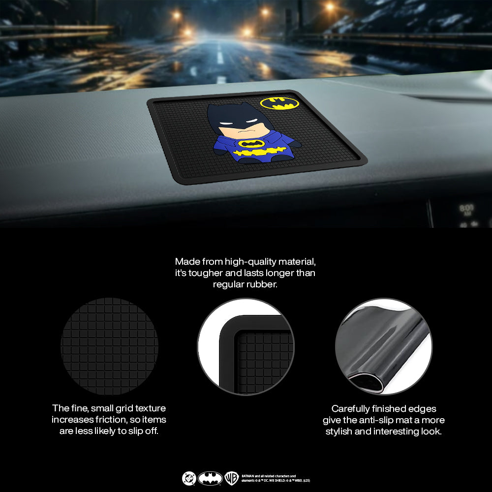 Add a dash of Gotham fun to your car with the Batman Cartoon Character Anti-Skid Mat from Involve Your Senses. Officially licensed by DC, this mat brings utility and fandom together in one stylish accessory. Featuring a bold and playful Batman cartoon design, this anti-skid mat not only elevates your car’s interior but also keeps your essentials — like phones, keys, and sunglasses — secure while you drive. Its non-slip, durable surface ensures your belongings stay in place, even on bumpy roads. Perfect for your car dashboard or center console, this mat is easy to clean, reusable, and a must-have collectible for Batman fans who love blending fun with function.