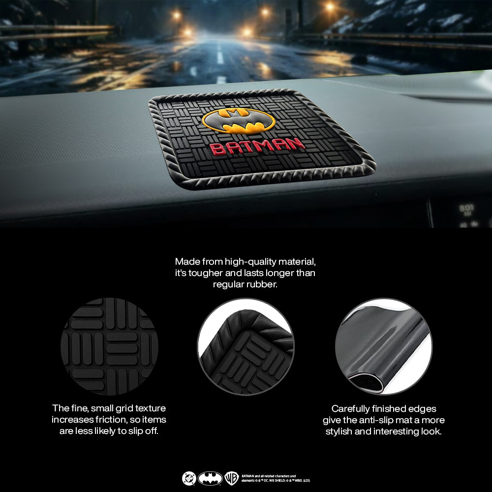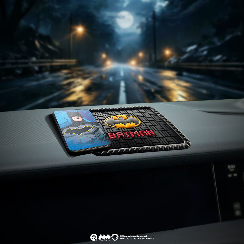 Show off your fandom with style and utility! The Batman Logo Anti-Skid Mat by Involve Your Senses is an officially licensed DC accessory designed to bring Gotham’s edge to your car interior. Featuring the iconic Batman emblem paired with “BATMAN” boldly written in red, this mat adds a striking visual element while keeping your essentials secure. Its anti-skid, durable surface ensures items like your phone, keys, coins, or sunglasses stay firmly in place — even on sharp turns or bumpy roads. Practical, easy to clean, and reusable, this mat is perfect for your car dashboard, center console, or even as a desktop accessory. It’s not just about function; it’s about driving with the Dark Knight’s legacy every day.
