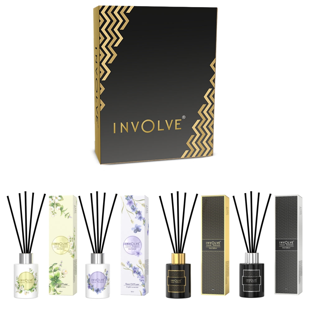INCLUDED COMPONENTS: 4 x Involve One Glass Bottle Diffuser Oil + 20 x Reed Sticks